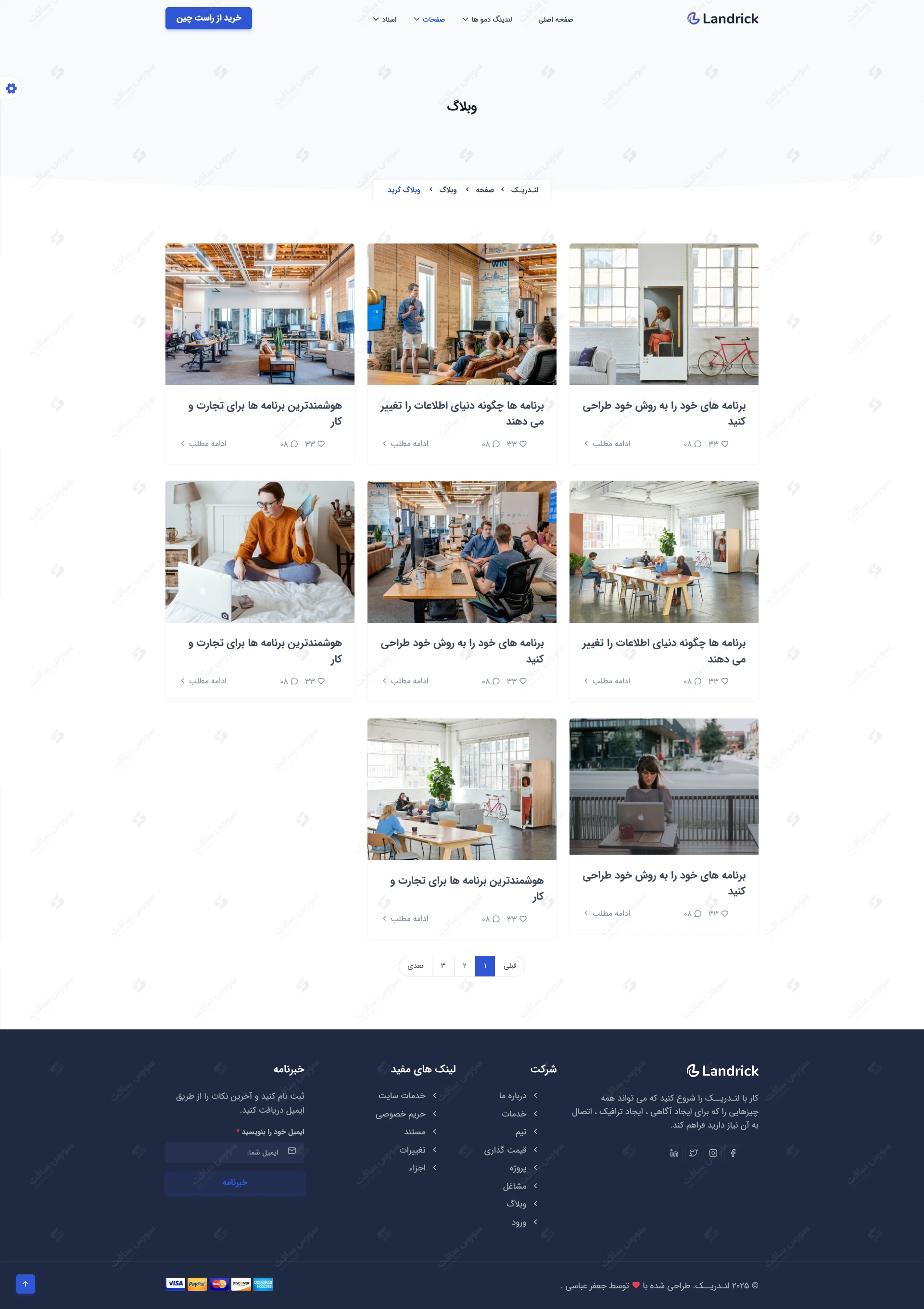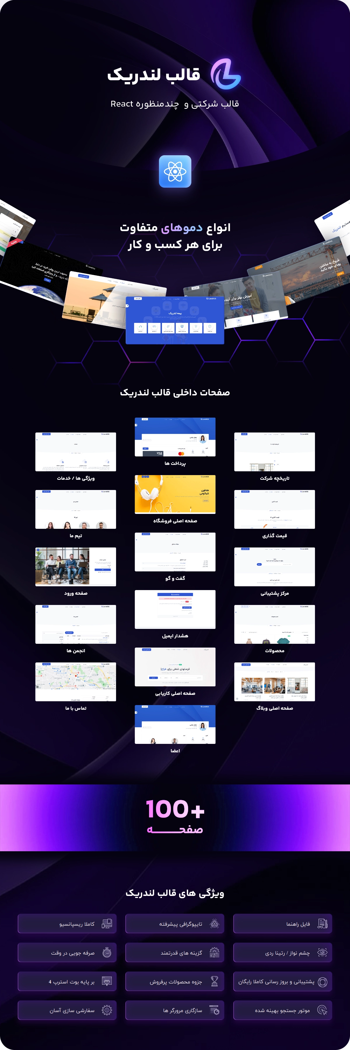 Landrick فقط یک قالب نیست؛ یک مجموعه کامل برای طراحی انواع سایت هاست. دموهای آماده آن حوزه های بسیار زیادی را پوشش می دهند. از جمله: