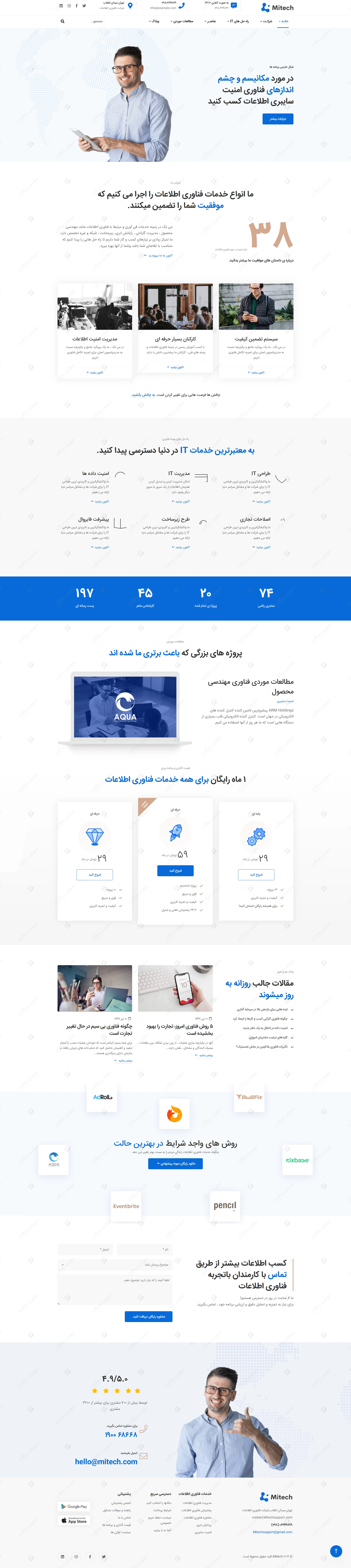 قالب Mitech یک قالب HTML شرکتی است که به طور خاص برای شرکتهای فعال در حوزه فناوری اطلاعات طراحی شده است. تمرکز اصلی این قالب روی حل یک مشکل رایج در وبسایتهای IT است. یعنی انتقال مفاهیم فنی پیچیده به شکلی ساده شفاف و قابل فهم برای مشتریان .
