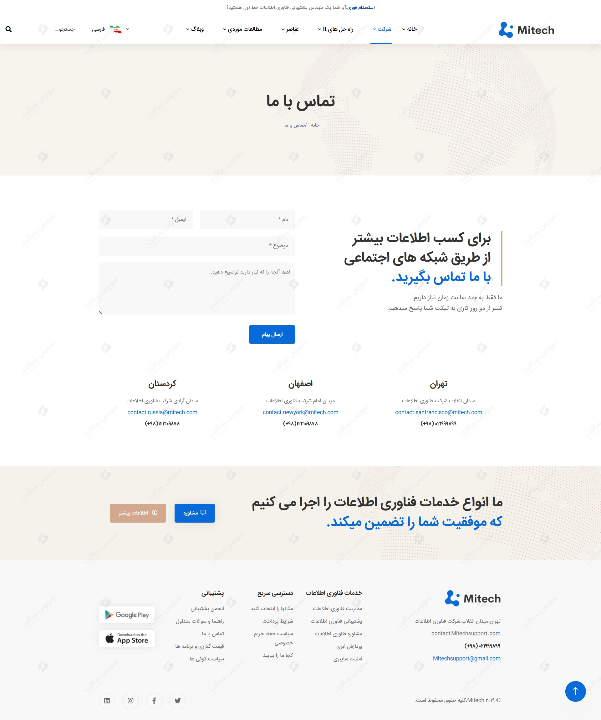 در Mitech طراحی ریسپانسیو به صورت واقعی پیادهسازی شده است . نه فقط در ظاهر بلکه در عملکرد. فرمها منوها و بخشهای خدمات در موبایل هم دقیقاً همان کارایی نسخه دسکتاپ را دارند.